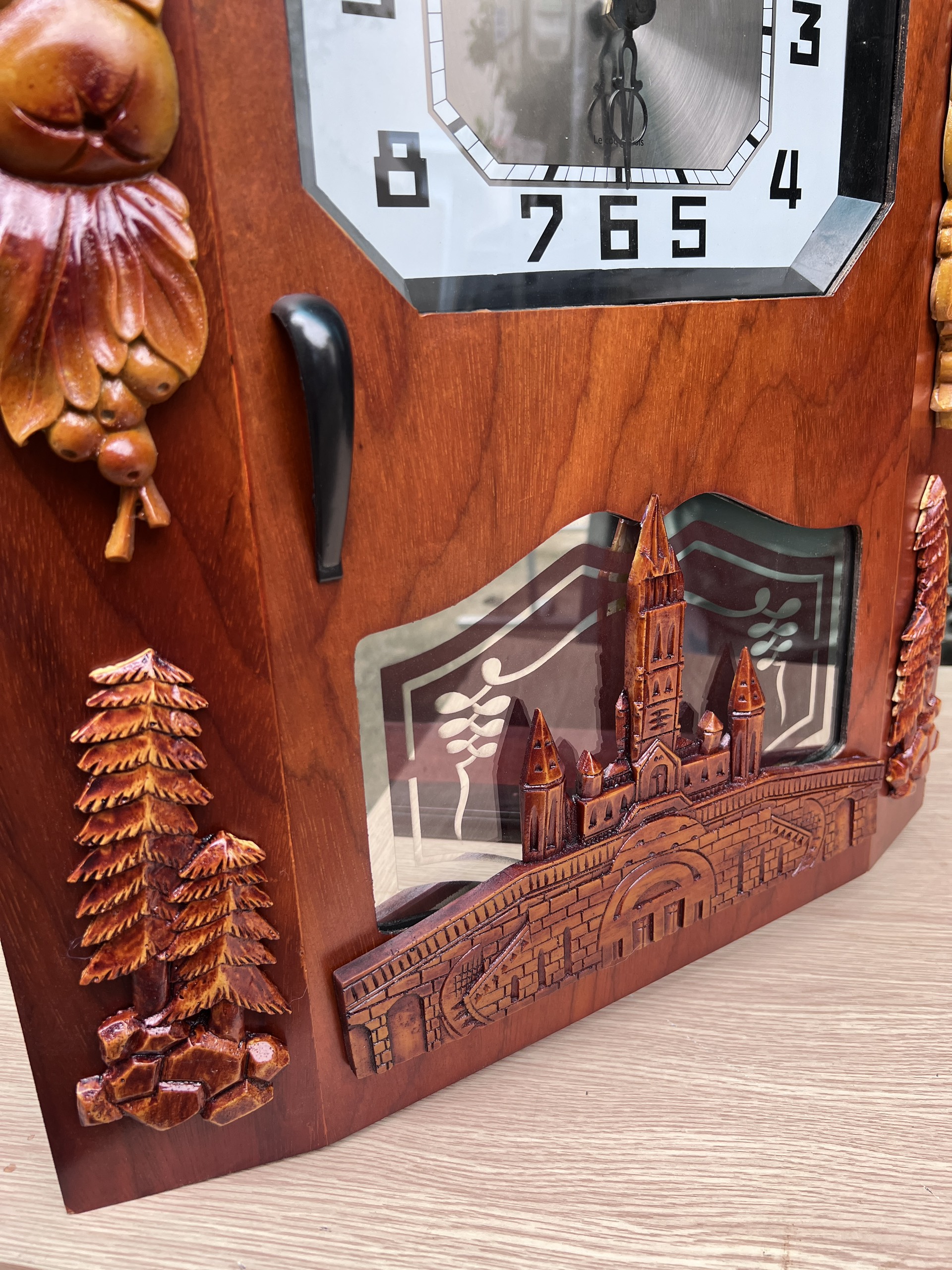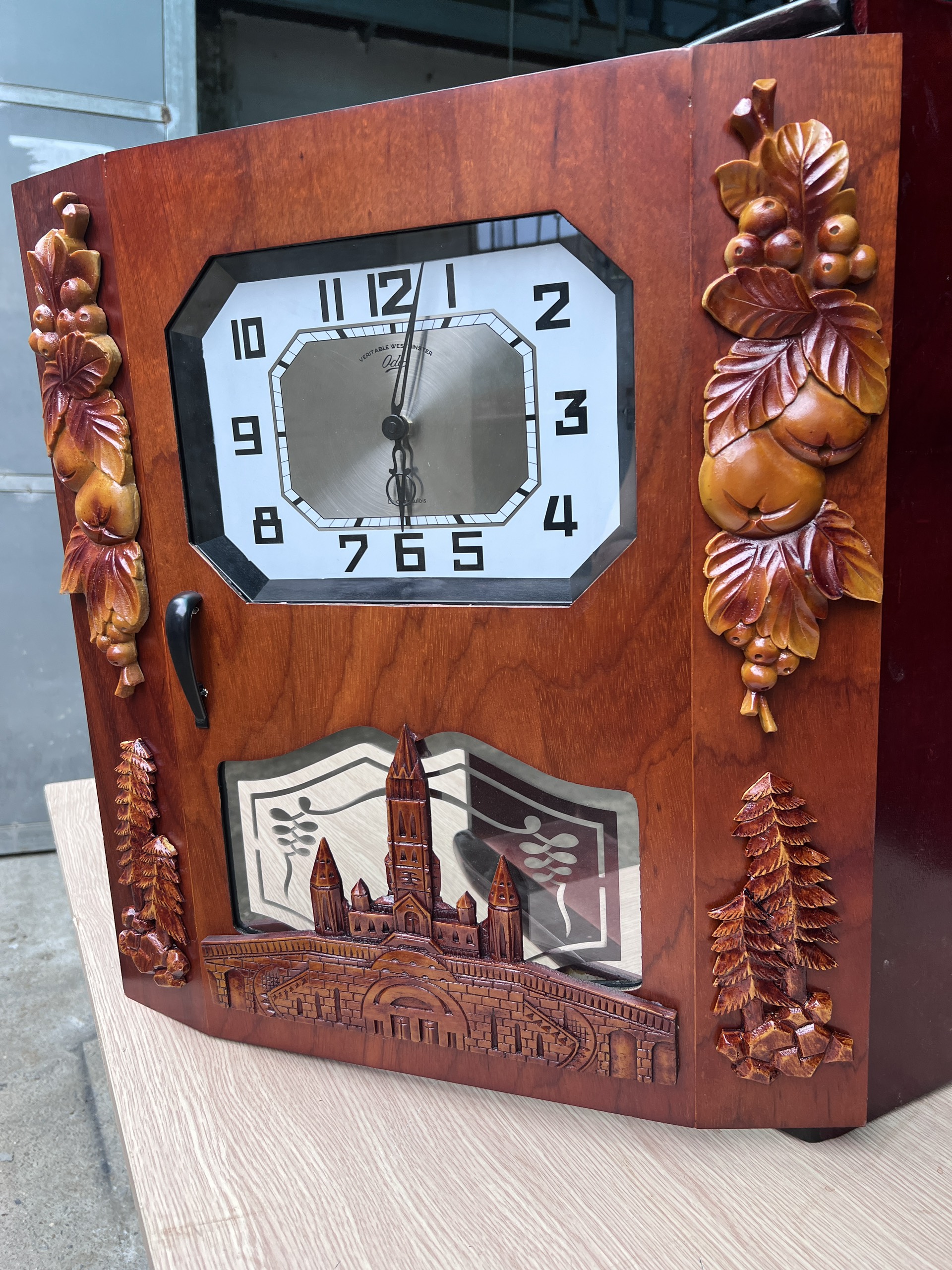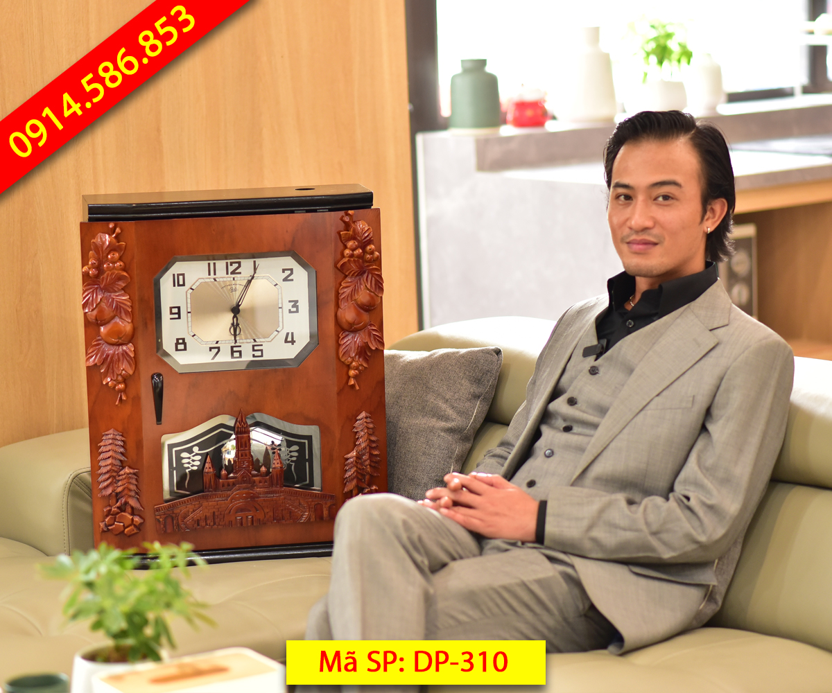 Đồng hồ thùng bè dáng cổ DP-310 là phiên bản đặc biệt nhất bởi đây là mẫu có thiết kế cầu kỳ, nhiều họa tiết trang trí nhất với họa tiết 4 góc kết hợp chùm nho, cành quả hồng và cây thông. Nổi bật nhất là họa tiết nhà thờ gắn dưới bao phủ cả ô quả lắc tạo nên sự khác biệt hoàn toàn so với các mẫu trước đây. Đây cũng là mẫu nhận được sự quan tâm đặt hàng nhiều nhất.