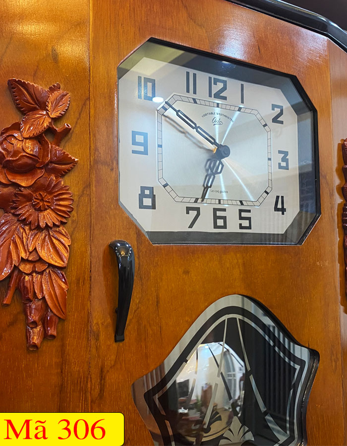 Đồng hồ treo tường cao cấp DP-306 thiết kế họa tiết hoa đồng tiền song song cân xứng 2 bên thích hợp làm quà tặng tân gia, gia đình mang ý nghĩa đặc biệt gửi gắm tình cảm chân thành, yêu thương, vui tươi và hạnh phúc. Ô kính quả lắc dạng hình quả chuông in hoa văn thủ công làm không gian trang trí thêm âm vang, cổ xưa làm nổi bật quả lắc trong lòng thùng đồng hồ.